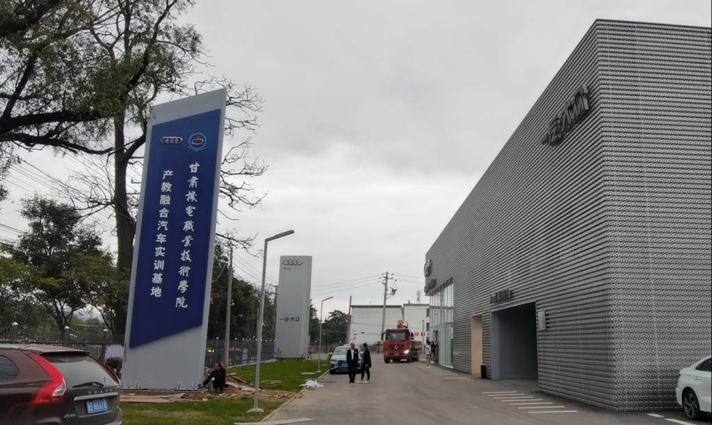 该基地按照一汽大众—奥迪C类4S店标准规划建设,并与于2021年07月通过一汽-大众奥迪的厂家验收,总用地面积6332.4㎡、总建筑面积5640.7㎡、拥有各功能停车位49个。商品车展厅面积919.1㎡、维修车间面积1333.4㎡、教室面积1386㎡。融合教学研究、奥迪汽车销售、奥迪售后服务、备件销售、客户服务为一体的创新型汽车产教融合基地。