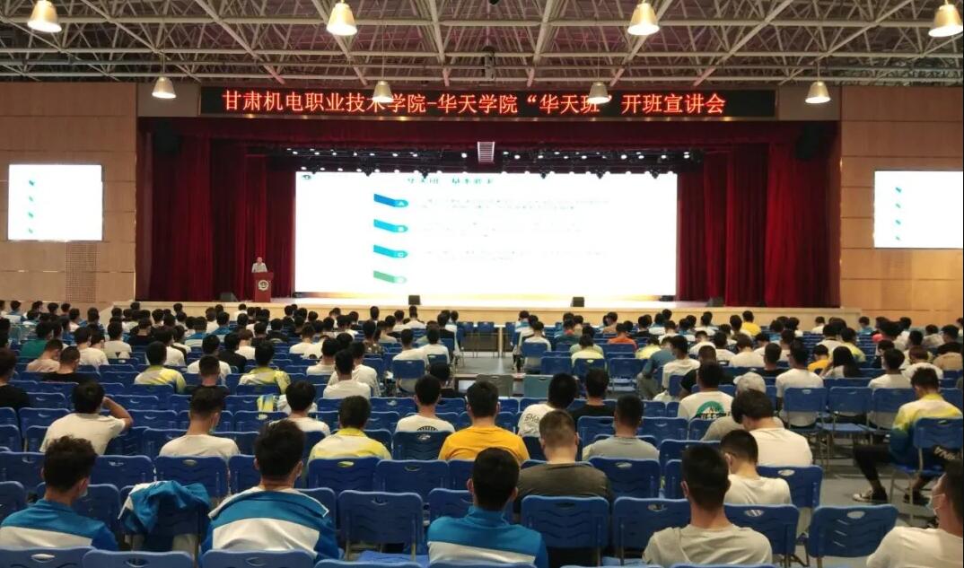 甘肃机电职业技术学院电气工程系于2020年6月23日下午四点,甘肃机电职业技术学院-华天学院“华天班”开班宣讲会在南校区食堂四楼大礼堂内顺利举行。