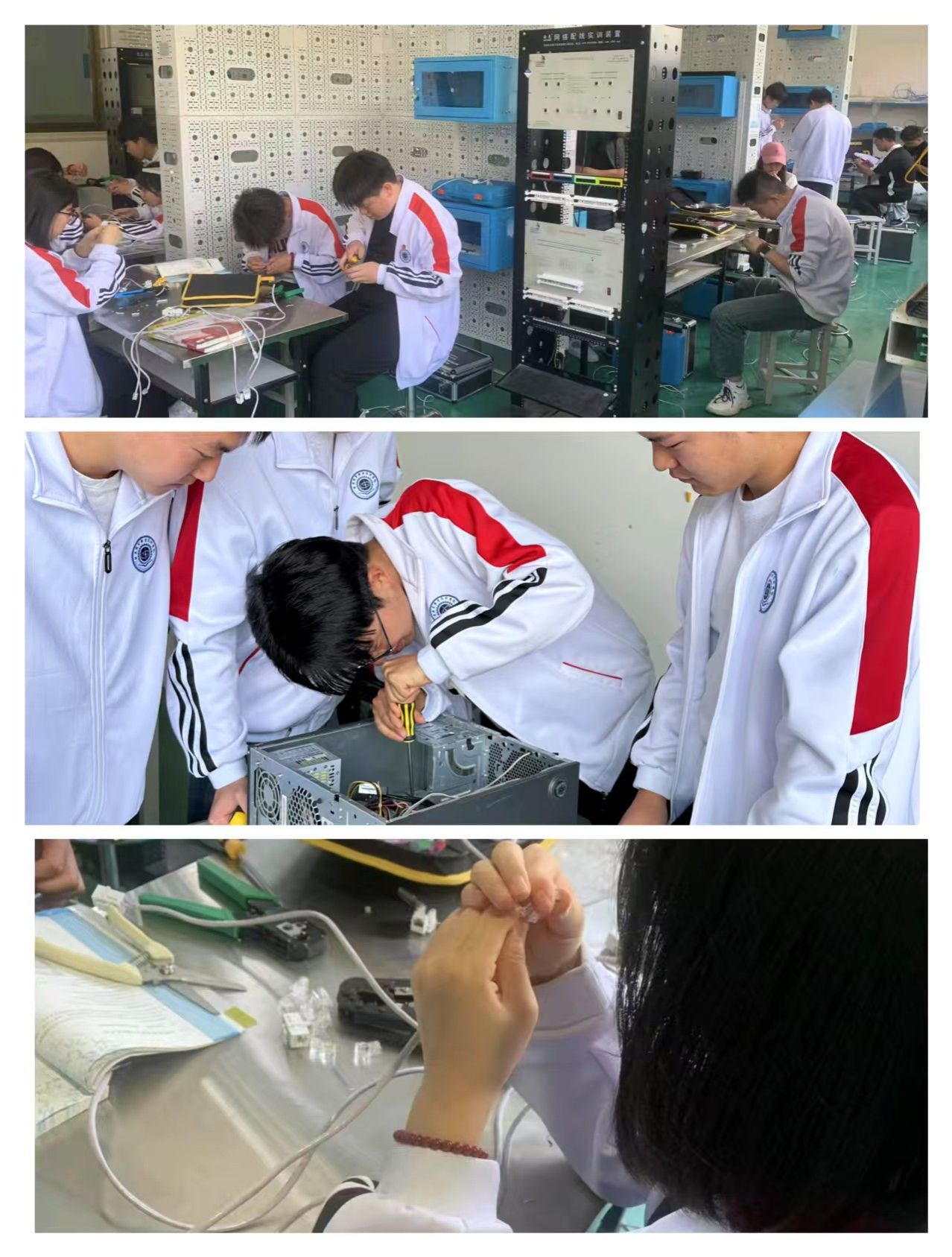 在综合布线实训室,崔凡凡老师为同学们详细讲解了网络布线的基本原理、行业标准及操作规范,并现场演示了网线模块的制作流程。学生们分组动手实践,从剥线、理线到压接水晶头,一步步完成网线制作与测试。大家纷纷表示,通过实际操作,不仅掌握了网络布线的基础技能,更深刻理解了理论知识在实际工作中的应用价值。