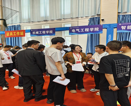 学院提前一个月对接智能制造企业集群,筛选出与电气自动化技术、供用电技术等专业高度匹配的优质企业,参加5月13日“职引未来——2025年全国城市联合招聘高校毕业生春季专场活动暨甘肃机电职业技术学院‘宏志助航’春季校园双选会”。双选会上,党总支书记杨龙带领辅导员团队驻场全程为学生提供咨询和指导服务。